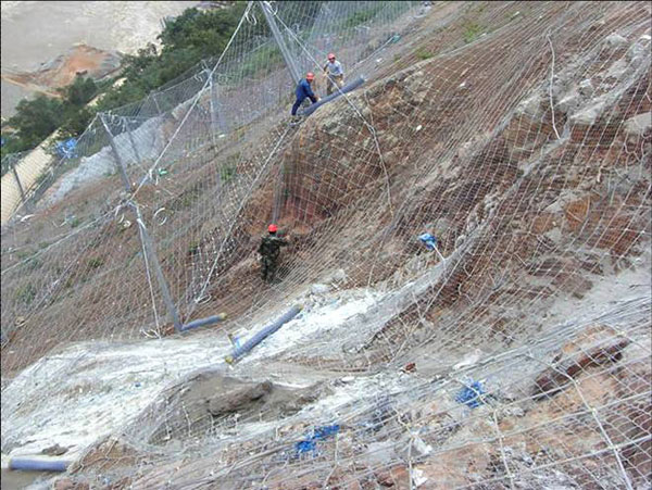 柔性防護網(wǎng):作用原理上類(lèi)似于噴錨和土釘墻等面層護坡體系,但因其柔性特征能使系統將局部集中荷載向四周均材質(zhì):鋼絲繩網(wǎng)、普通鋼絲格柵(常稱(chēng)鐵絲格柵)和TECCO高強度鋼絲格柵 勻傳遞以充分發(fā)揮整個(gè)系統的防護能力,即局部受載,整體作用,從而使系統能承受較大的荷載并降低單根錨桿的錨固力要求 。具有高柔性,高防護強度,易鋪展性。適應任何坡面地形,安裝程序標準化、系統化。系統采用模切化安裝方式,工期短,施工費用低。系統材料的特殊制造工藝和高防腐防銹技術(shù),決定了系統的超高壽命。系統能將工程隊環(huán)境的影響降到最低點(diǎn),其防護區域可以充分的保護土體、巖石的穩固,便于人工綠化,有利于環(huán)保。