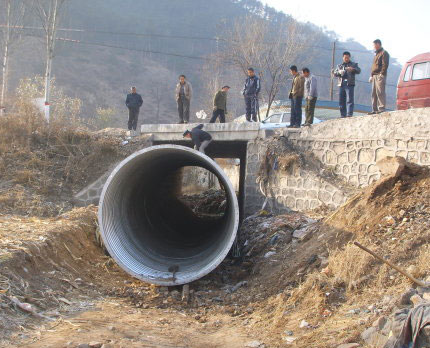 金屬波紋管涵采用標準化設計、集中化生產(chǎn),現場(chǎng)安裝土建與型材可分開(kāi)實(shí)施,減少或根本舍棄了常規建材,工期短,環(huán)保意義深遠。金屬波紋管涵的結構受力情況合理,荷載分布均勻,并具有一定的抗變形能力,能解決北方寒冷地區(霜凍)對橋梁和管涵砼結構的破壞問(wèn)題;使路表面沒(méi)有伸縮縫,提高行車(chē)舒適性;有利于改善軟土地基結構與路堤交界處的“錯臺”現象,提高行車(chē)安全性。波紋管涵的工后營(yíng)運、養護成本低,工程實(shí)際造價(jià)也低于同類(lèi)跨徑的橋梁、涵洞。